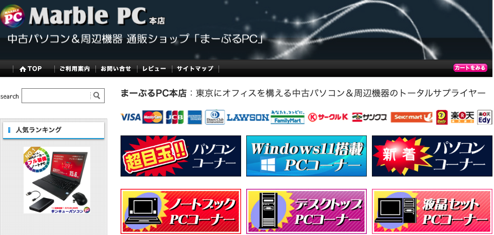 「まーぶるPC」は、中古パソコンを中心に幅広いUSEDアイテムを取り扱うオンラインショップです。