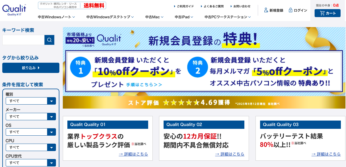 Qualit(クオリット)は、横河レンタ・リース株式会社が運営する中古パソコン専門店です。