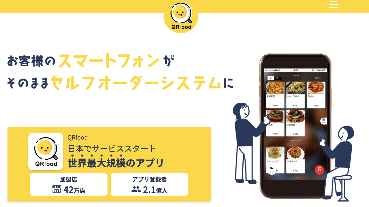 「QRfood(キューアールフード)」は、中国・台湾・タイ・シンガポールなど、世界42万店舗以上が導入、登録ユーザー2.1億人超を誇るグローバルなモバイルオーダーシステムです。