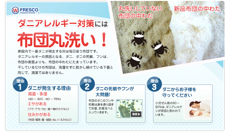 フレスコは、宅配便を使った“布団丸洗いサービスの元祖”として、多くのご家庭に選ばれてきました。