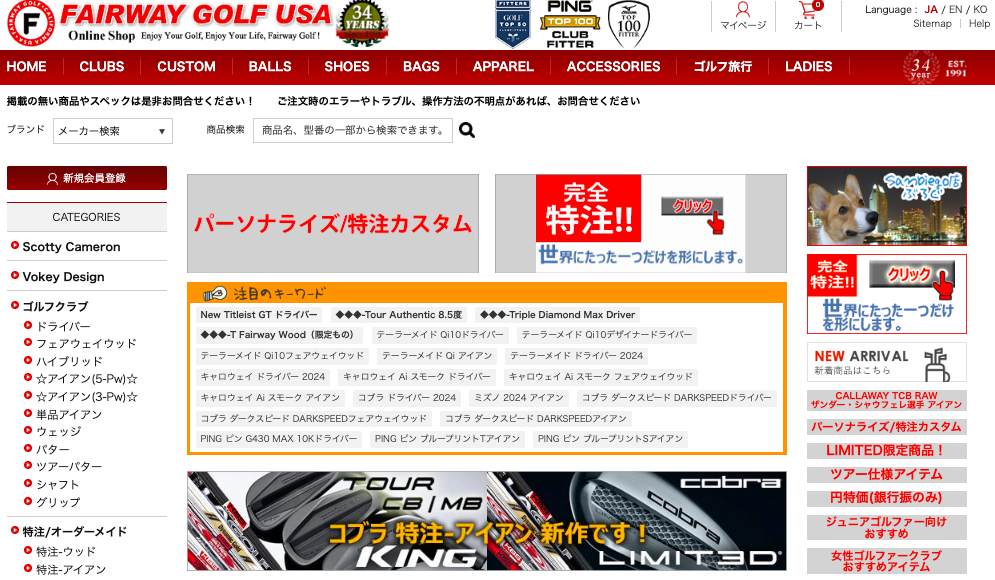 フェアウェイゴルフは1991年にアメリカ・カリフォルニア州のサンディエゴにオープンしており、アメリカ本土にて34年の実績がございます。