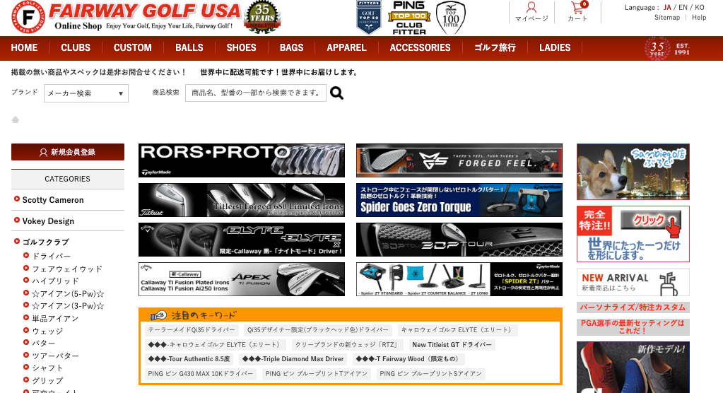 フェアウェイゴルフは、1991年にアメリカ・カリフォルニア州サンディエゴで誕生したゴルフショップ。現在はカリフォルニアに2店舗を展開し、世界中のゴルファーや有名選手から愛され続けています。公式サイトを通じて、日本のゴルフファンの皆さまへ、US限定モデルや国内未入荷モデルなど、日本では手に入りにくい最新クラブを直送でお届けしています。