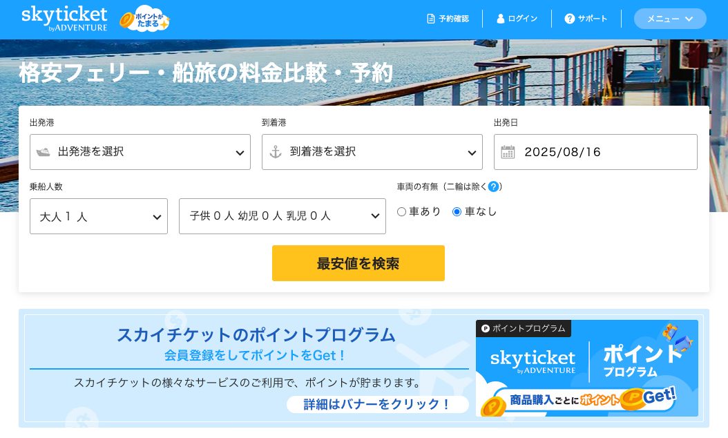 【スカイチケットフェリー】なら、便利でお得な船旅がすぐに見つかります。