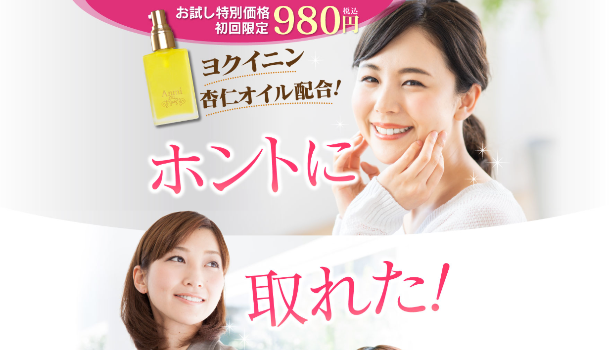 【アンミオイル】は、杏の種の核から抽出した高級杏仁オイルを黄金比率で配合した、天然100%の美容オイルです。皮膚の薄い首元や目元、胸元にも安心して使えるやさしい処方で、大手通販モールで多数の1位を獲得、雑誌掲載700回以上、満足度96%を誇ります。