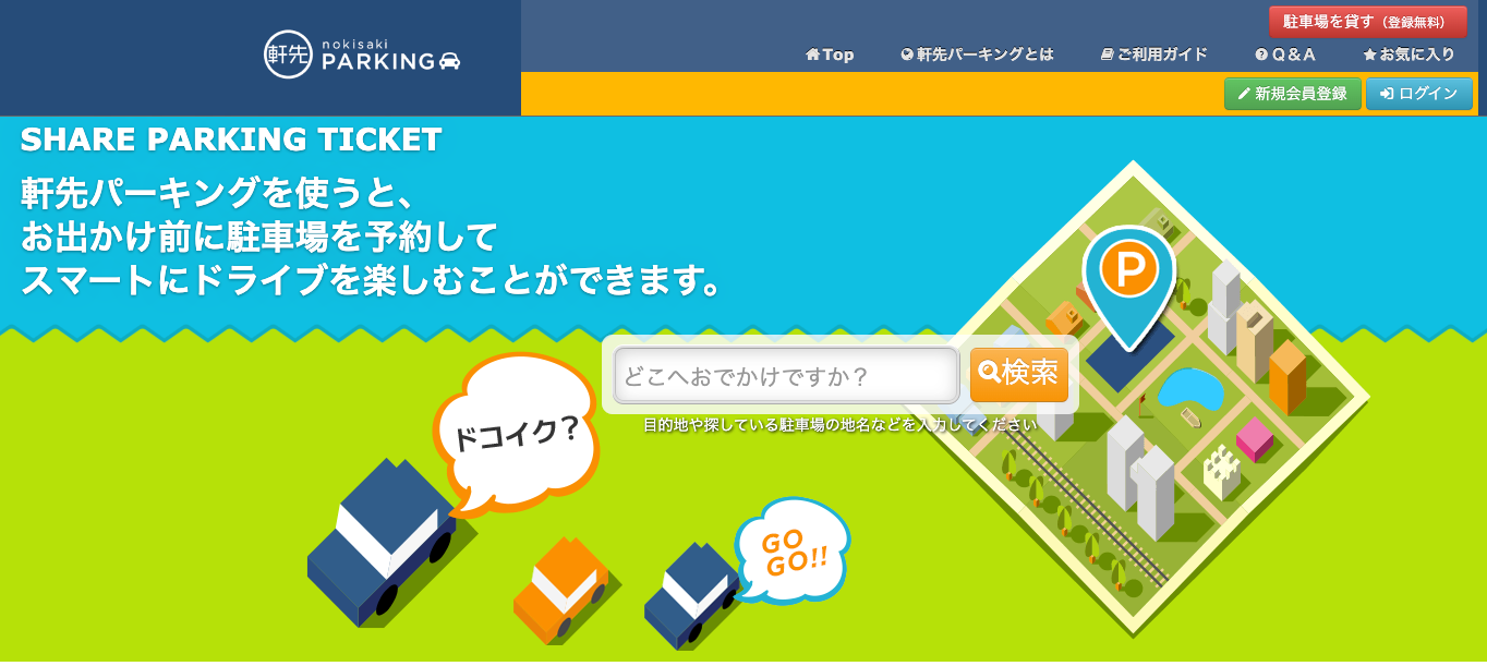 【軒先パーキング】は、日本全国の駐車場を事前にお得な料金で予約できるサービスです。お出かけ前に駐車場を確保できるから、当日に満車のコインパーキングを探して時間をムダにする心配がありません。