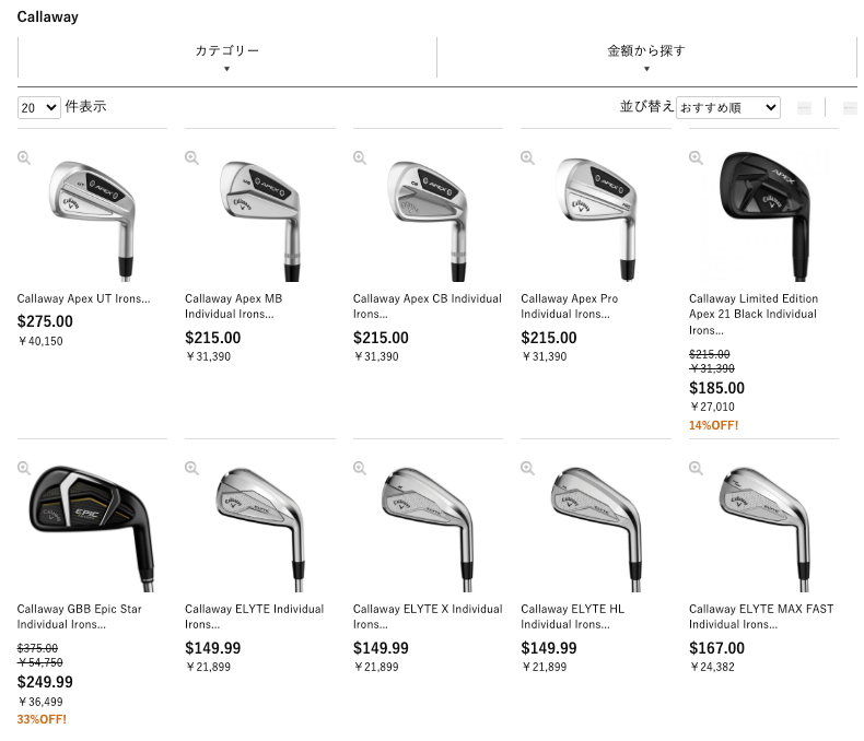 商品名 | フェアウェイゴルフ(キャロウェイ アイアン) |
