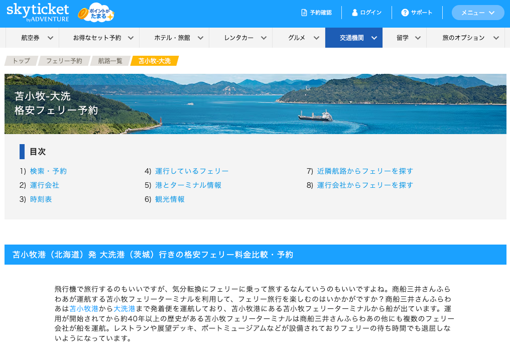 商品名 | スカイチケットフェリー(苫小牧 大洗 フェリー) |