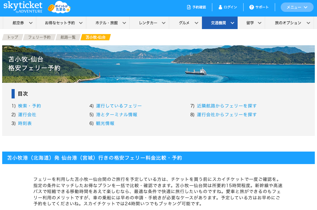 商品名 | スカイチケットフェリー(苫小牧 仙台 フェリー) |