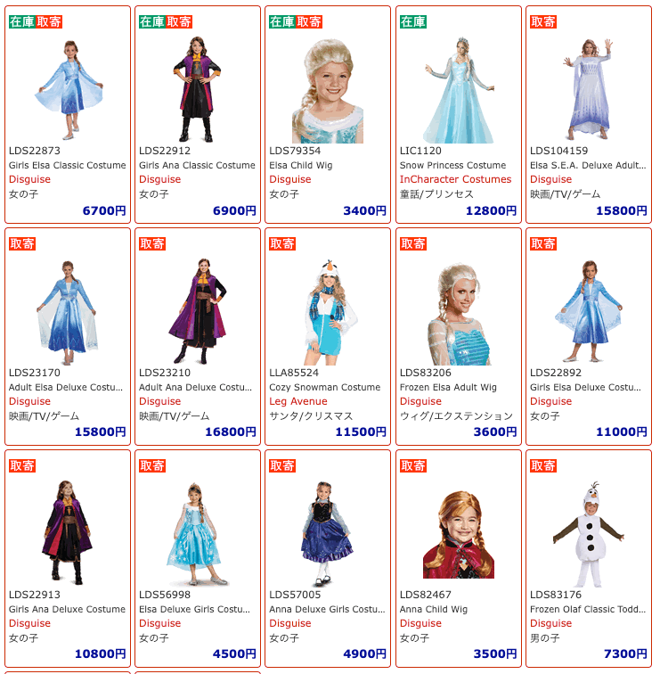 さらに、あのディズニー映画に登場するキャラクター衣装も取り扱っており、夢の世界をそのまま再現できます。