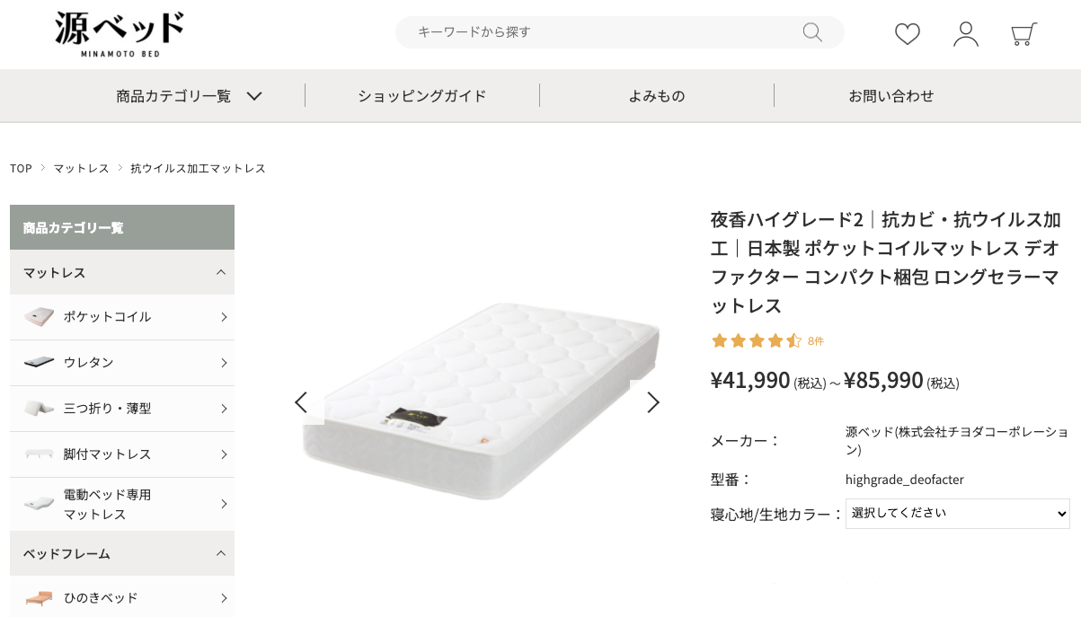 夜香ハイグレード2は、国産ならではの丁寧な縫製と堅牢な構造で、長期間使用してもへたりにくいのが特徴。コストパフォーマンスに優れており、長く良質な睡眠環境を維持したい方にぴったりです。